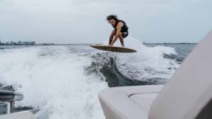 Every detail was considered in the design of this new model and the result is a boat that features the latest technology and precise craftsmanship. From the varnished mahogany helm with a central command system for all electronics to the perfectly designed cockpit that is shaded by an electric folding tower, this boat has it all. We invite you to explore the many unique features aboard this boat that can only be found on a Chris-Craft.